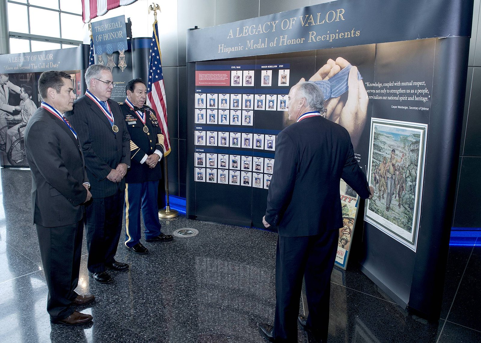 The Hispanic Medal of Honor Society’s Legacy of Valor exhibit was on display at Defense Intelligence Agency Headquarters as part of the agency’s celebration of Hispanic Heritage Month. Through photos and artifacts, the exhibit highlighted the 60 Congressional Medal of Honor recipients of Hispanic descent, as well as Hispanic prisoners of war, astronauts and civic leaders.